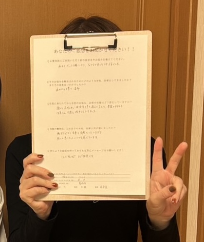 今まで病院へ通っても良くなることがなかったのですが、施術して頂き、腰の痛みが激減したので、びっくりしました。
