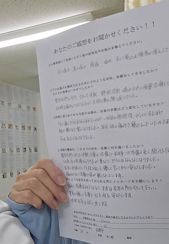 首、肩の痛み、頭痛でお悩みのK様(50代/女性)